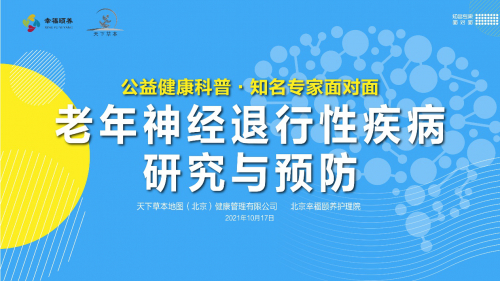 10月17日上午,在北京中医药发展基金会的指导下,由天下草本地图(北京)健康管理有限公司联合北京幸福颐养护理院共同主办的“老年神经退行性疾病的评估与预防“专题研讨会,在幸福颐养护理院顺利召开。中国中医科学院老年医学研究所原所长、中国中医科学院国家病重点学科学科带头人、世界中医联合会老年医学专业委员会常务副会长李跃华教授,大健康产业(发展)联盟首席科学家、欧盟中国城市发展委员会首席科学家、欧盟中国抗生素耐药性研究专家组中方专家、美国国立健康研究院客座研究员张天佑教授,幸福颐养集团副总经理杨慧,从医学家、科学家、健康服务专家的视角共话中医药与现代科技的结合对于预防和改善老年痴呆、抑郁和帕金森等关键性突破,聚焦传统中草药的创新发展,探讨以天然产物创新研究为抓手,促进相关产业和学科发展,为我国天然产物研究发展等提供建设性的思考。