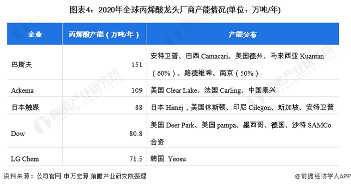——全球丙烯酸企业产能集中度较高