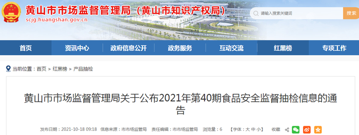 中国质量新闻网讯 2021年10月18日,安徽省黄山市市场监督管理局网站发布2021年第40期食品安全监督抽检信息的通告。本期共抽检14类食品106批次样品,其中抽检茶叶及相关制品49批次,合格49批次。