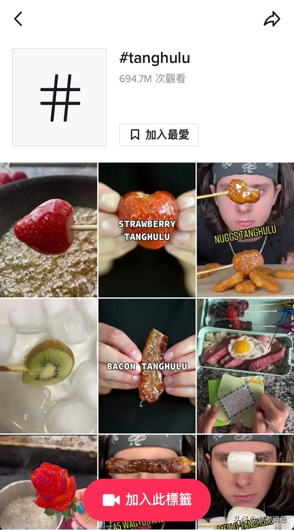 TikTok上,词条#tanghulu(糖葫芦)视频观看量近7亿
