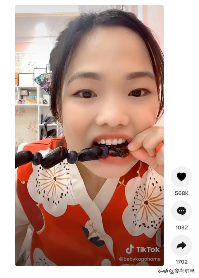 TikTok创作者吃糖葫芦,口口清脆