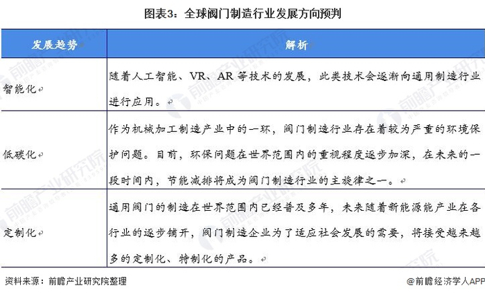 原标题:2021年全球阀门制造行业市场现状与发展趋势分析 市场成熟向好发展、行业变革正在进行 来源:前瞻产业研究院