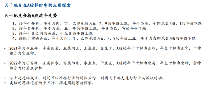 此外,报告还用天干地支,详细分析了A股流年走势。