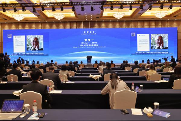第六届世界中国学贡献奖得主中有两位年逾九旬的老者,英国汉学家、剑桥大学克莱尔学院院士鲁惟一是最年长者,明年他将迎来自己的百岁生日。对于获得这个奖项,鲁惟一在简短的视频获奖感言中,除了感谢,特别提到中国学者在中国文明史研究中作出的贡献,表示“东西方学者均从这些贡献中获益匪浅”。