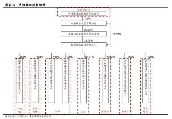 岳阳林纸股份有限公司,前身为岳阳造纸厂,成立于1958年,并于2004年5月在上海证券交易所上市,自2010年起由央企诚通控股集团实际控制。公司是国内林浆纸一体化龙头企业,进行大型文化用纸、包装纸、工业用纸的生产和销售。此外,公司以林浆纸产业为基础,进行产业链延伸,进入生态行业,从事林业勘查设计、林业碳汇开发、景观设计、园林工程施工养护、生态治理,形成了以“浆纸+生态”为主营业务的双核发展产业格局。