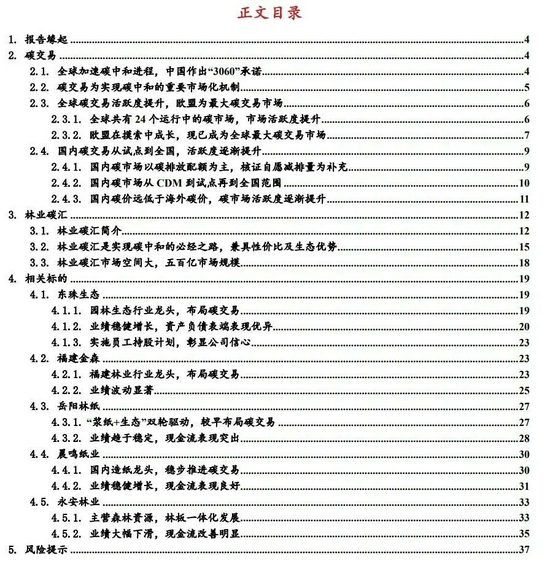 政策落地不及预期;碳交易推广不及预期;林业碳汇可逆性。