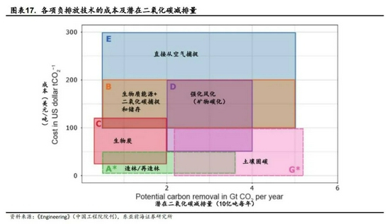 林业碳汇为最经济的负排放技术。目前,具体的负排放技术主要包括造林/再造林、生物炭、直接空气捕捉、强化风化等等。根据中国工程院院刊《Engineering》,造林/再造林(林业碳汇)是最经济的负排放技术,去除二氧化碳的成本大概在10-50美元/吨;直接空气捕捉是最昂贵的负排放技术,去除二氧化碳的单吨成本在数百美元或更高;生物质能源+二氧化碳捕获和储存技术介于两者中间,去除二氧化碳的成本在100-200美元/吨左右。