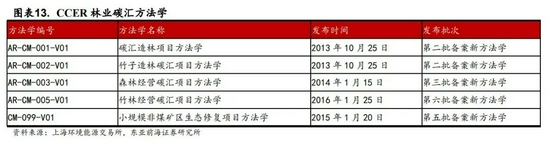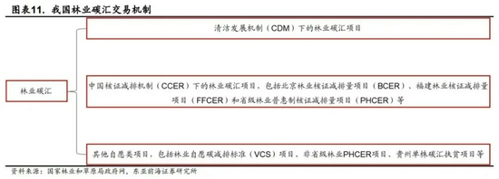 林业碳汇起源于CDM机制,CCER机制重启将扩大行业成长空间。2006 年,在世界银行的支持下,全球首个成功注册的CDM 林业碳汇项目---“中国广西珠江流域再造林项目”在广西实施。该项目完成造林面积3008.8 公顷,到2035 年项目预期可实现温室气体减排量约77 万吨,首个监测期内成功签发了13.2万吨碳汇减排量,收益51.9 万美元。目前,我国林业碳汇主要交易形式包括1)清洁发展机制(CDM)林业碳汇项目交易;2)中国核证减排机制(CCER)林业碳汇项目交易,包括北京林业核证减排量项目(BCER)、福建林业核证减排量项目(FFCER)和省级林业普惠制核证减排量项目(PHCER)等;3)其他自愿类项目,包括林业自愿碳减排标准(VCS)项目、非省级林业PHCER项目、贵州单株碳汇扶贫项目等。林业碳汇作为CCER明确的方向之一,在CCER重启后将迎来快速增长时期。