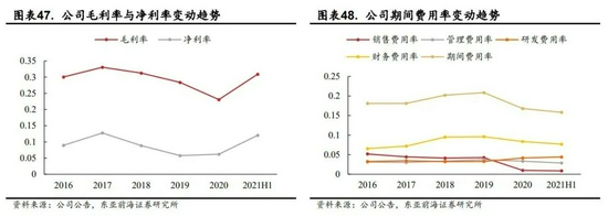资产负债表端表现优异,无有息负债,大股东无股权质押。 公司资产负债表端表现优异,主要体现在1)虽资产负债率呈上升趋势,由2016年的49.5%提升至2021年H1的56.1%,但在同业内仍处于较低位置;2)无有息负债;3)应收账款周转天数处于业内较低水平;4)大股东无股权质押。