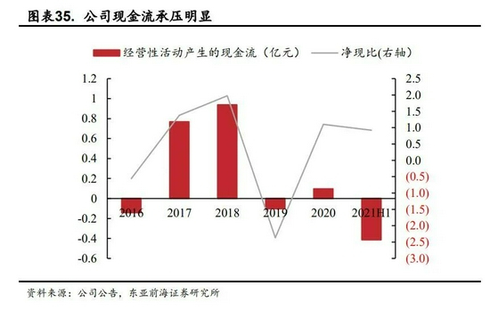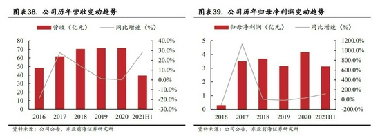 公司现金流波动较大,承压明显。2016-2020年,公司经营活动产生的现金流量净额分别为-0.1/0.8/0.9/-0.1/0.1亿元,同期净现比为-0.6/1.4/2.0/-2.4/1.1。2021年H1,公司经营性活动产生的现金流量净额为-0.4亿元,去年同期为-0.5亿元,现金流略有改善,主要得益于公司销售正常化。