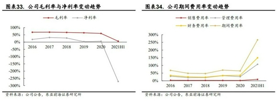 公司盈利能力下降明显,费用保持稳定。2016-2020年,公司毛利率总体稳定、略有下降,由2016年的68.2%小幅下降至2020年的59.7%;净利率下降明显,由2016年的18.5%大幅下降至2020年的5.9%。2016-2020年,公司费用变化不大,管理、销售、财务费用率分别稳定在20.4%~33.3%、1.9%~3.5%、23.4%~35.3%,管理和财务费用较高。2021年H1,公司毛利率为6.1%,同比-42.8pct,主要由于营业成本大幅增加所致;净利率为-271.4%,同比+498.5pct,去要系去年同期受疫情影响,公司业务开展严重受阻所致。同期公司期间费用率为266.5%,同比-610pct,主要系上年同期受疫情影响,公司营业收入过少导致。