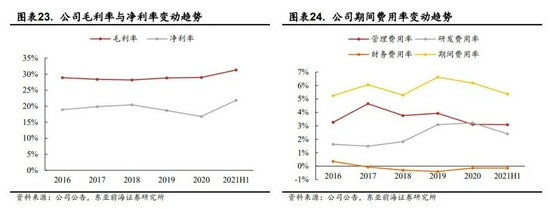公司盈利能力稳中有升,财务费用率大幅下降。2016-2020年,公司毛利率总体稳中有升,由2016年的16.8%小幅提升至2020年的19.0%。2016-2020年,公司费用管控良好,管理、研发分别稳定在3.3%~4.8%、2.7%~3.4%,财务费用率不断下降,由2016年的4.2%大幅下降至2020年的0.9%。2021年H1,公司毛利率为20.4%,同比+1.0pct;净利率为8.0%,同比+3.4pct,主要系公司纸产品价格同比上升且成本控制较好所致。同期公司期间费用率为11.1%,同比-2.2pct,其中销售费用率降幅较大,同比-3.6pct,主要系销售承包费同步大幅下降所致。