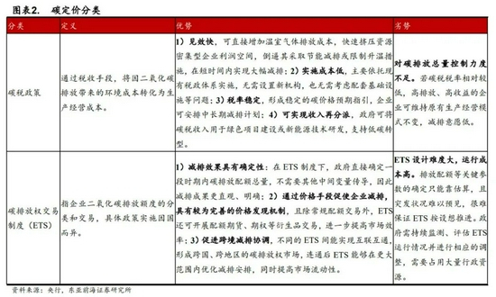 碳交易作为碳定价的一种,优势显著。碳交易是指合同的一方通过支付另一方获得温室气体减排额,买方可以将购得的减排额用于减缓温室效应从而实现其减排的目标。在《京都协议书》要求减排的6种温室气体中,二氧化碳为最大宗,故碳交易以每吨二氧化碳当量为计算单位。碳交易既帮助了林业等绿色行业发展,又给予了高碳排放量企业节能减排改革的时间,是实现碳中和的重要市场化机制。相较于碳税政策,碳交易政策具有如下优势:1)政府直接确定一定时期内的碳排放配额总量,即二氧化碳最大排放量,因此减排效果具有确定性;2)价格发现机制完善,大大提升市场效率;3)有利于促进跨国、跨地区减排协调,提高市场流动性。