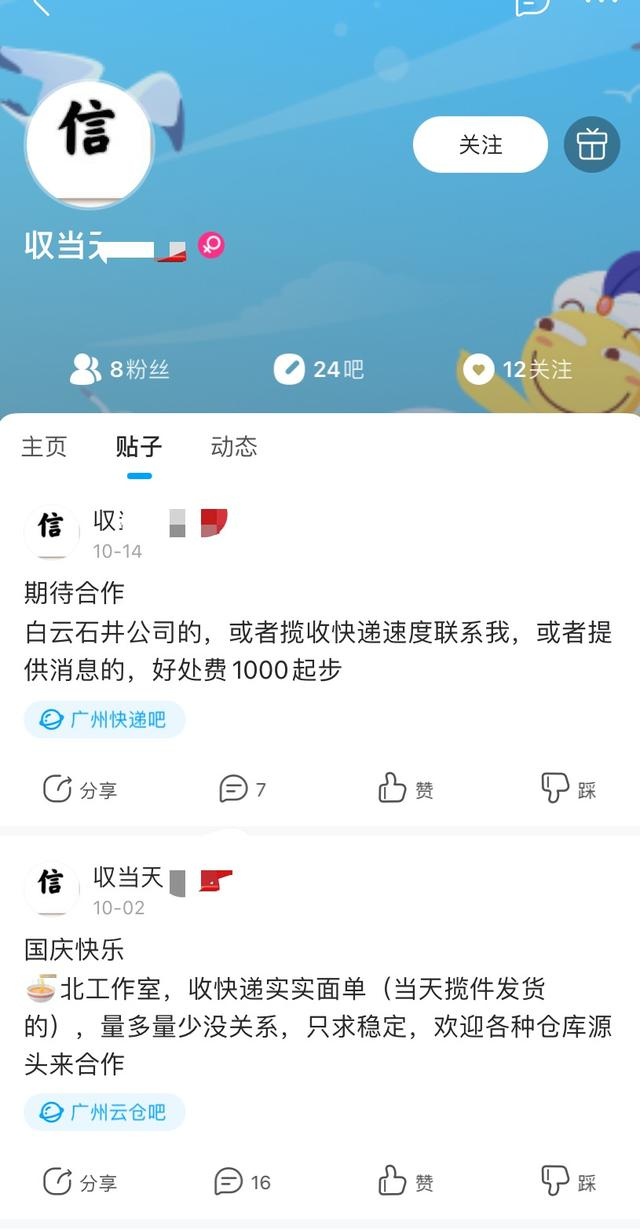 活跃在社交平台上的快递信息收购者,寻求与快递公司工作人员“合作”。