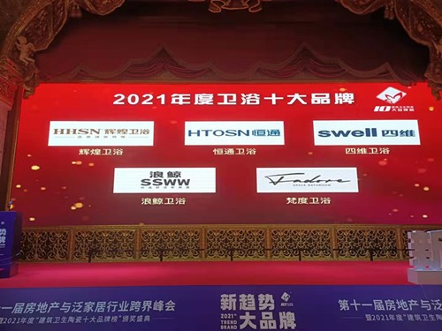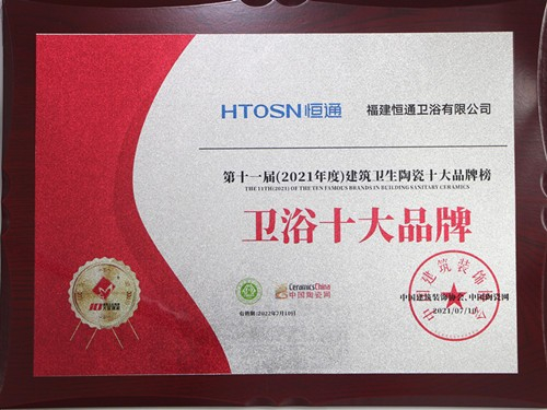恒通卫浴斩获2021“卫浴十大品牌”称号