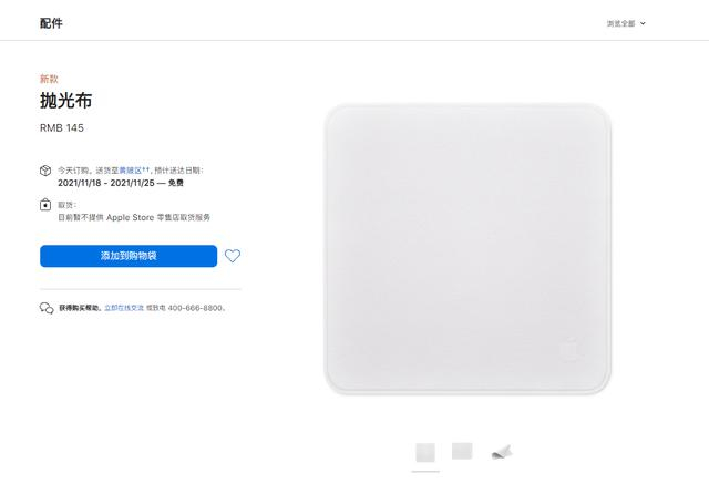 近日,苹果官网上架一款“抛光布”产品,售价高达145元。