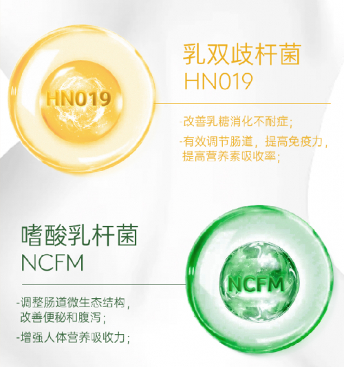 NATUREDAY团队经过多年研究,选择了由世界上最大的益生菌供应商杜邦公司生产的专利益生菌菌株:嗜酸乳杆菌NCFM和乳双歧杆菌HN019。临床报告证明,这两种明星级黄金益生菌的组合,能最大程度优化肠道环境,让珍贵的A2β-酪蛋白、乳钙和营养能够得到最大化吸收。