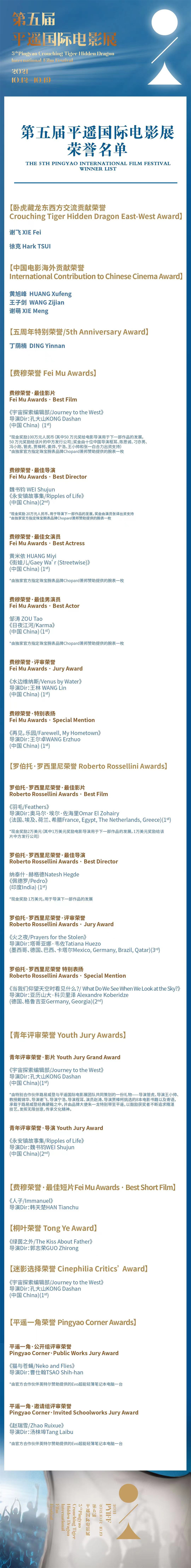第五届平遥国际电影展荣誉名单↓↓