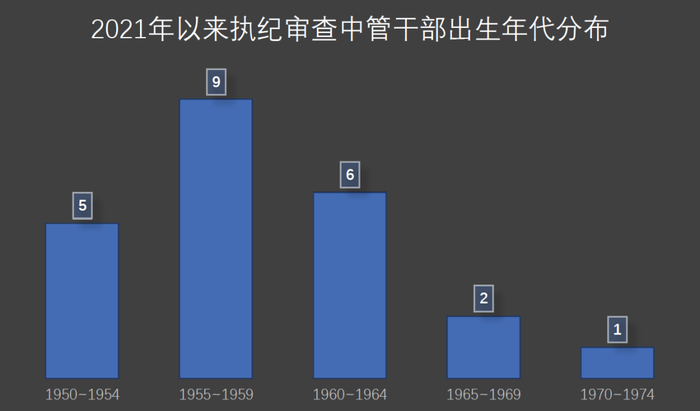 记者通过中纪委网站统计发现,从年龄结构看,今年以来落马的中管干部中, 50后14人,60后8人,70后1人。1955年-1959年之间出生的最多,达9人,1960年-1964年之间出生的有 6人。