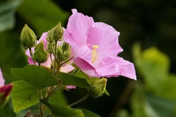 木芙蓉为落叶灌木或小乔木,花期较长,可从九月中旬开至十一月,在萧条的秋季兀自鲜妍。最难得的是这娇艳的花朵还会变色,花初开时为白色,后来稍红,再后来鹅黄、粉红等,能连开数日,逐日变色,甚至一朵花上也能出现不同的颜色。由于花大而色丽,中国自古以来多在庭园栽植,或作景观,或作花篱,都很合适。