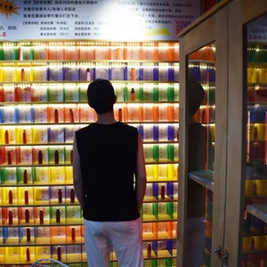 北京朝阳区一家剧本杀实体店也推出了脱单盲盒附加业务。店内有两面墙被展示柜占据。在以星座、出生日期和性格来分类的384个小格子里,散落着几十只6厘米高的小瓶子,透明的属于女性,深色的属于男性。所有瓶子,都拥有一盏“格子间”里的聚光灯。