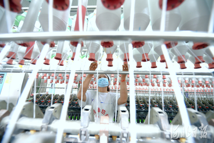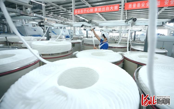 近年来,该县大力实施开放带动主战略,主动承接先进发达地区产业转移,推进纺织服装产业发展。目前,全县已形成以气流纺为基础,环锭纺、织布、家纺、服装加工迅猛发展的全产业链发展态势。河北日报记者杜柏桦摄影报道