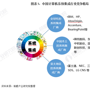 我国的系统集成市场高度分散,市场竞争十分激烈。目前市场上主要的系统集成厂商主要包括三类:一是全球性的系统集成厂商,包括IBM、HP、AtosOrigin、Accenture、BearingPoint等全球知名公司,他们服务对象主要是金融、电信、制造等行业的大中型企业。二是中国本土的系统集成厂商,包括神州数码、东软集团、中软股份、亚信集团、联创科技、宝信软件等,他们客户对象主要是政府、电信、制造等行业。最后一类是亚太地区的系统集成厂商,包括日系的富士通、NEC等,韩系的三星SDS、LG CNS等,他们主要为该国在华投资企业进行系统集成服务。