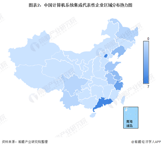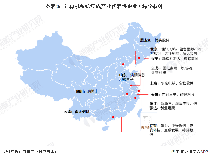 从我国计算机系统集成产业链企业区域分布来看,计算机系统集成产业企业主要分布在四个区域:以辽宁、北京、为代表的北方产业区;以浙江、江苏、上海为代表的长三角产业区;以广东省为首的珠三角产业区;以云南、四川为代表的西南产业区。