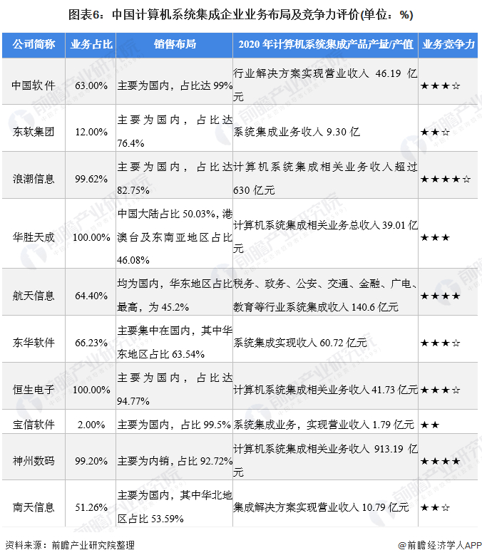 原标题:【行业深度】洞察2021:中国计算机系统集成行业竞争格局及市场份额(附市场集中度、企业竞争力评价等) 来源:前瞻产业研究院
