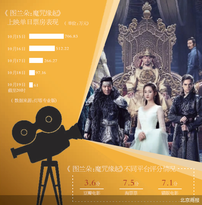 值得注意的是,《图兰朵:魔咒缘起》不只是票房表现不及预期,口碑也自上映后持续下跌。在豆瓣电影上,截至北京商报记者发稿,该片的评分仅为3.6分,49.3%的评价者打出了一星评分,而三星及以下的评分占比更是达到超九成。与此同时,在淘票票、猫眼电影两个平台上,《图兰朵:魔咒缘起》也只分别获得7.5分和7.1分。这与影片的星光熠熠相比,显然没有得到相匹配的市场反馈。