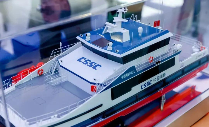 在风能展上,中国海装与远舟科技联合设计制造的国内首艘30米级专业风电运维船发布,最大装载38吨,可抗浪高4米,可搭乘12名运维人员和6名船员,具有高强度、轻重量的结构特点和优良的安全性、快速性、防腐性、耐波性等,将于今年正式投运。