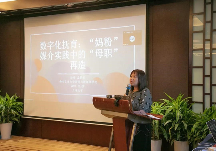 西安交通大学新闻与新媒体学院讲师徐婧介绍了与自己指导的研究生孟繁荣共同进行的 《数字化抚育:“妈粉”媒介实践中的“母职”再造》。
