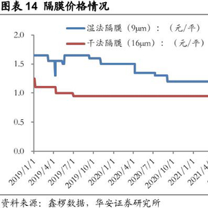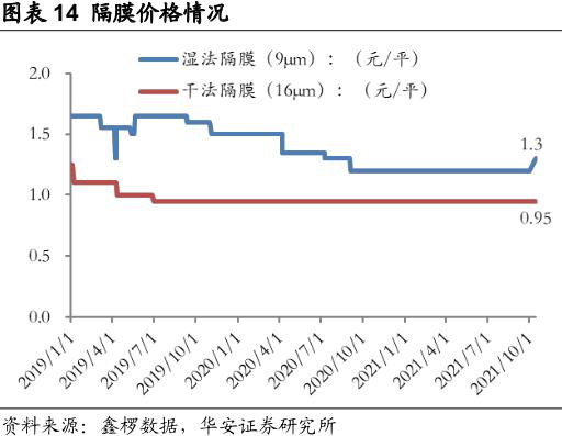 隔膜价格变动情况图片来源:华安证券
