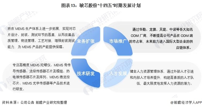 “十四五”期间,敏芯股份加快在业务、市场、技术以及人才队伍四方面的拓展。具体来看,敏芯股份将进一步加深全产业链布局,在高精度MEMS陀螺仪等高端产品的技术研发方面深度投入,抓紧进入国际大型企业的供应链体系布局。