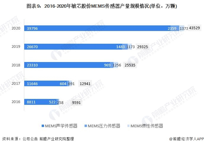——产销规模分析:MEMS声学传感器产销规模最大,整体规模逐年增长