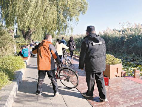 同样的情况也出现在2号线积水潭地铁站C口外的小微公园里。“这里不让骑车,请您从外面的路走。”“我不骑,就抄个近路。”下午3点多,在步道上,工作人员多次劝返闯入小微公园的骑车人。