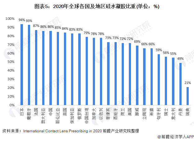 原标题:2021年全球隐形眼镜行业原材料市场分析 多个国家及地区的硅水凝胶使用占比超过70% 来源:前瞻产业研究院