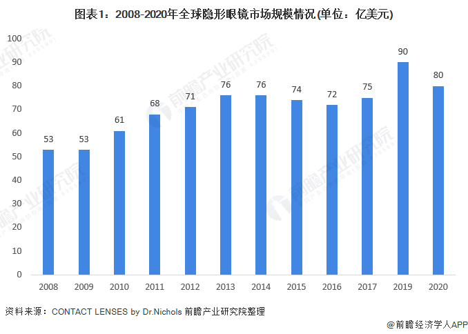 ——受疫情影响,2020年全球隐形眼镜市场规模同比下降