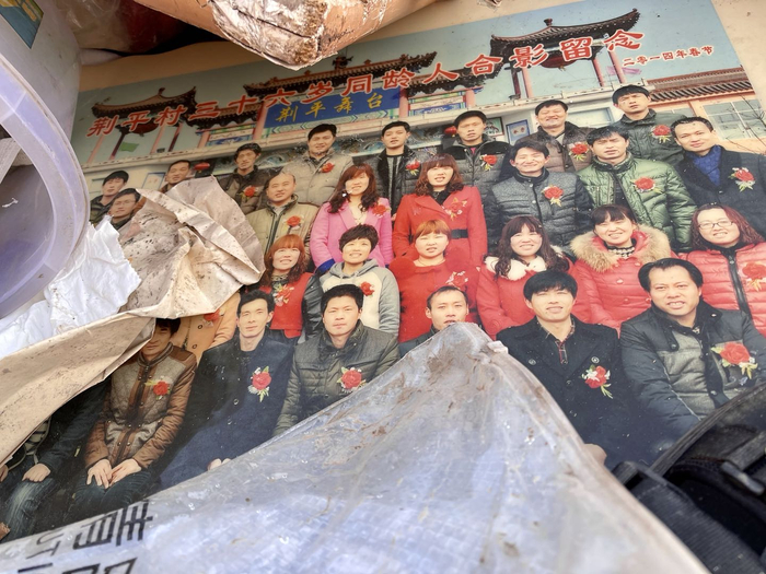 裹在泡水家具里被扔出来的还有一张合照,照片拍摄于2014年,三四十位36岁的荆平村民坐在一起合了张照。按这里的风俗,逢27岁、36岁是个坎,同村同龄人要一起吃饭合影,相当于交个朋友,跨过这个坎。