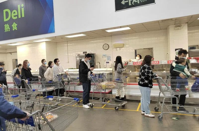 山姆店内排队的顾客姜艳鑫摄影