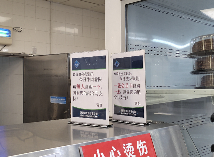 《华夏时报》记者在走访中观察到山姆店内的网红烤鸡与牛肉卷柜台排满了顾客,“因为限购,所以很多人都买不到。”店员对记者说。