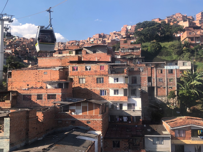 麦德林有哥伦比亚第一个也是至今唯一一个轨道交通系统,由电车,轻轨和缆车组成。其中最大胆的做法是连接了城市边缘陡峭山脊上的贫民窟和山谷中心的6条缆车。这是全世界为数不多的,不是为了休闲旅游,而是为了本地人通勤交通而设置的缆车,也是推动麦德林社会转型的重要举措。每天有35万人乘坐缆车,本地人只需要一张地铁票,不到1美元就可以从城郊的山区,快速抵达城市发展的中心。