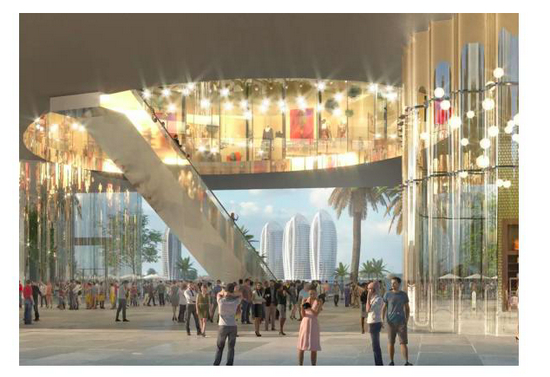 按照规划的功能定位,塔楼将建设成为地标性办公楼,裙楼将成为具有休闲、娱乐、商业功能的零售购物中心。项目建成后,从裙楼中庭向海边眺望,充满热带海洋风情的凤凰岛,将如海市蜃楼般亦真亦幻。
