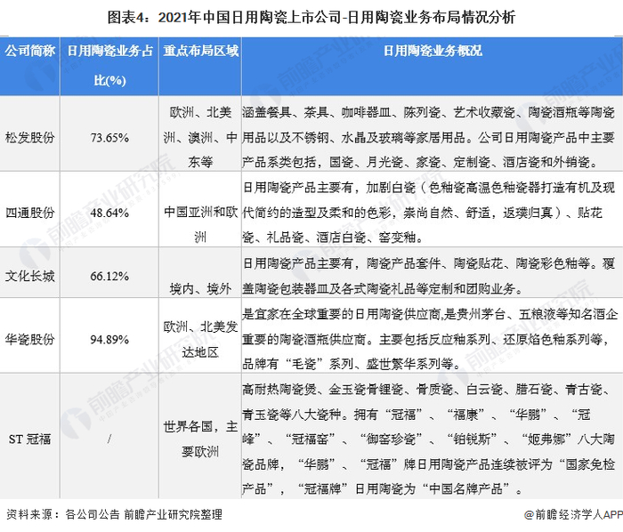 原标题:【最全】2021年日用陶瓷行业上市公司全方位对比(附业务布局汇总、业绩对比、业务规划等) 来源:前瞻产业研究院