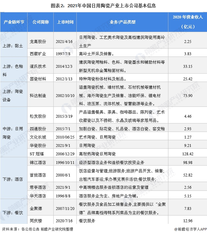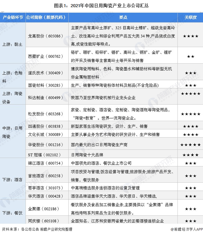 1、日用陶瓷产业上市公司汇总