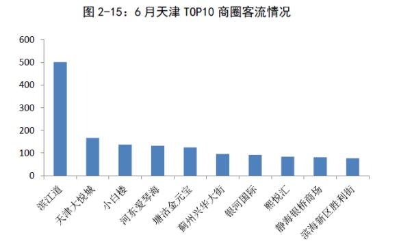 白皮书同时指出,天津商圈对外具有较强影响力,主要商圈外省旅游消费者占比14.3%,其中滨江道、大悦城、银桥商场3个商圈外省客流占比超过15%。疫情防控形势下,就近游兴起,河北旅游消费者占比最高,为3.3%。商圈还促进了夜间经济的发展,河东爱琴海夜间客流占比超50%,其余商圈均在30%至50%之间。5个商圈超过45%水平。