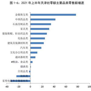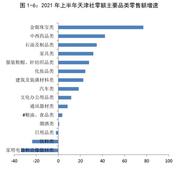 从具体消费特征而言,天津居民消费升级需求正在加快释放。白皮书显示,2020年天津汽车类商品零售额占限额以上单位商品零售额的比重比2015年提高5.9%。2021年上半年,天津限额以上单位金银珠宝类、家具类、化妆品类、汽车类零售额同比分别增长77%、31.7%、24.5%和18.5%,增速均高于社会消费品零售额增速。