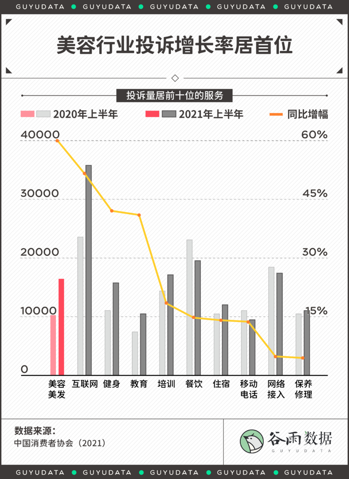根据中国消费者协会的统计,来自美容、美发服务类别的投诉同比增长速度,远超其他行业,甚至超过了遍及生活的互联网服务。