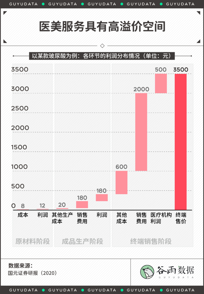 当一毫升的玻尿酸从出厂的8块钱成本到实际售卖的3500元甚至上万元。作为医美供应商的上游更可能拥有暴利,而医美机构则面临着过多的不确定风险。
