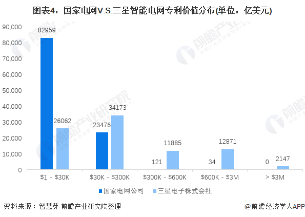本文核心数据:国家电网与三星公司专利市场价值、国家电网与三星公司重点专利布局、国家电网与三星公司专利类型对比